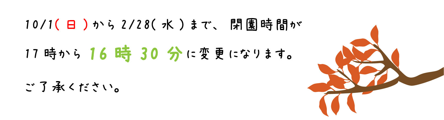 | 開園時間 | 3月~9月 9:00-17:00 10月~2月 9:00-16:30 |